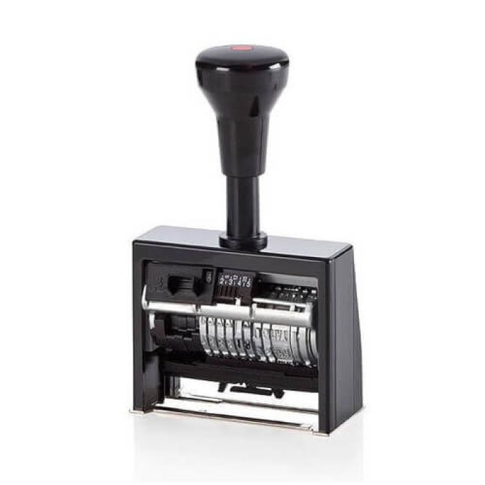 6 karakteres sorszámozóval, Antiqua betűtípussal. A jobboldali 5 számkeréken automatikusan történik a váltás. A speciális számkerekeknek köszönhetően a bélyegzés látható, vagy nem látható nullákkal is történhet.